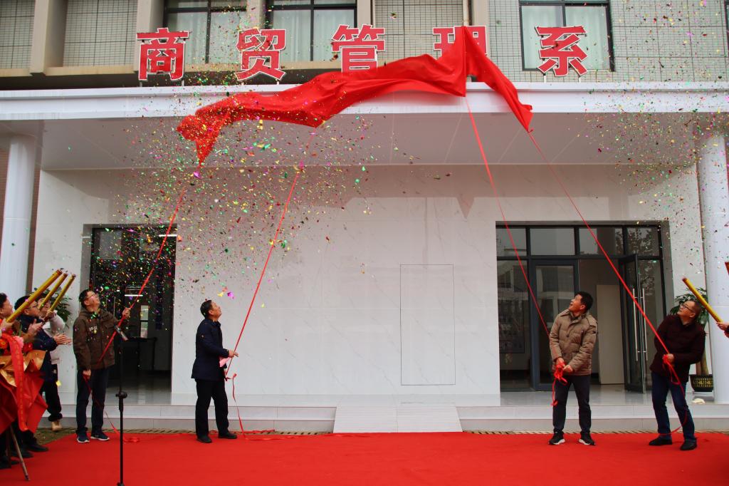 学院党政办、教务科研处、机电工程系、自然资源系等职能部门、兄弟系部代表和商贸管理系全体教职工共同见证揭牌。