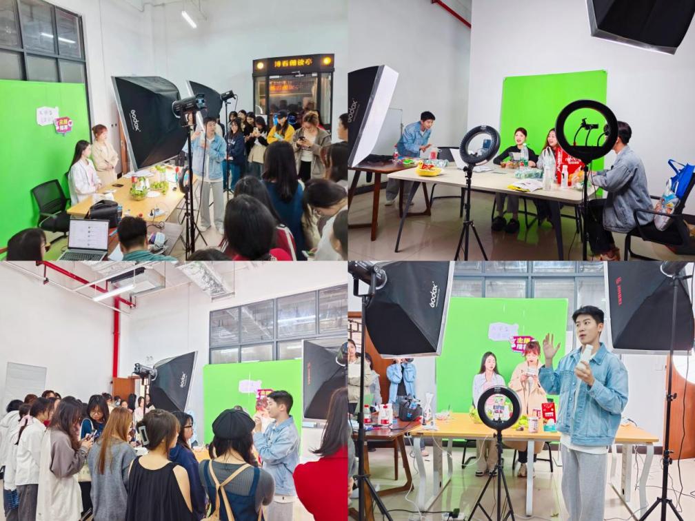 在课程实践环节,赖家益对网络营销与直播电商专业学生进行了直播实操专业指导。他带领学生进行了实时上播实操演练,针对学生们的表现进行了点评和指导,帮助学生们更好地掌握直播电商的技巧和要领,让学生们亲身体验了直播电商的魅力。
