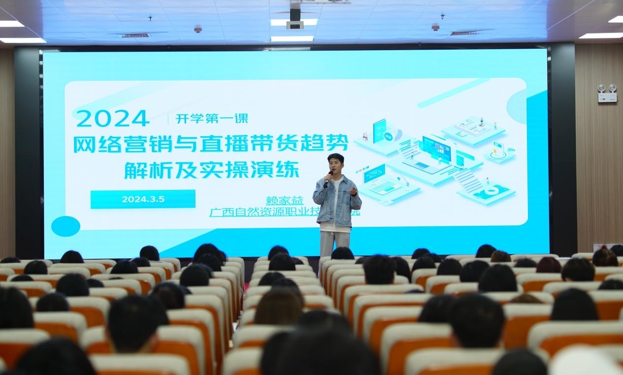自2023年受聘为广西自然资源职业技术学院网络营销与直播电商专业首席实践导师以来,赖家益持续为商贸管理系电子商务专业群的建设出谋划策,对电商专业学生进行实战教学和指导,他的加入为专业教学质量的提高和产教融合发展注入新活力。赖家益老师带来的 “开学第一课”,为同学们带来了宝贵的行业知识和实践经验,提高了学生学习和实践兴趣,利于学生以更积极的态度投入新学期学习。(商贸管理系 杨莹/文)