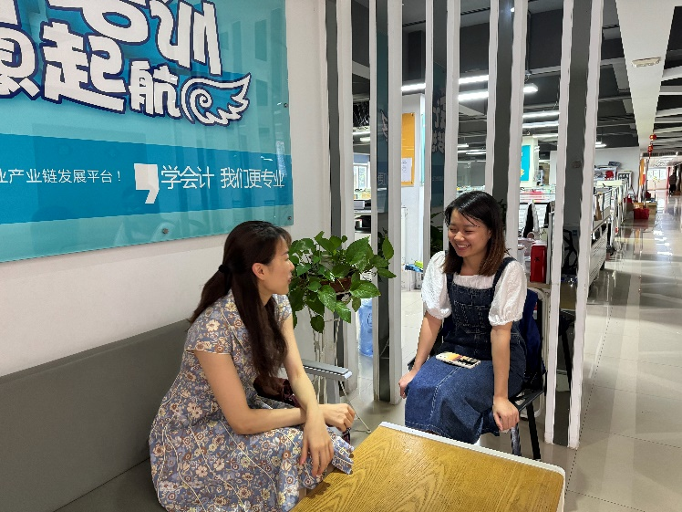 在东莞百正税务师事务所有限公司,公司创始人郭伟介绍了事务所会计人才培养和输送模式,对会计从业人员的岗位技能需求作深入分析,并列举多所高校的案例与调研组分享“双元育人”的校企合作模式。企业表示希望与我院进一步加强合作,共建会计人才校外实训基地。调研组还与我校在事务所实习的学生进行交谈,密切关注学生的实习就业情况、生活状态和思想动态,为后续我校学生的实习和就业提供参考。