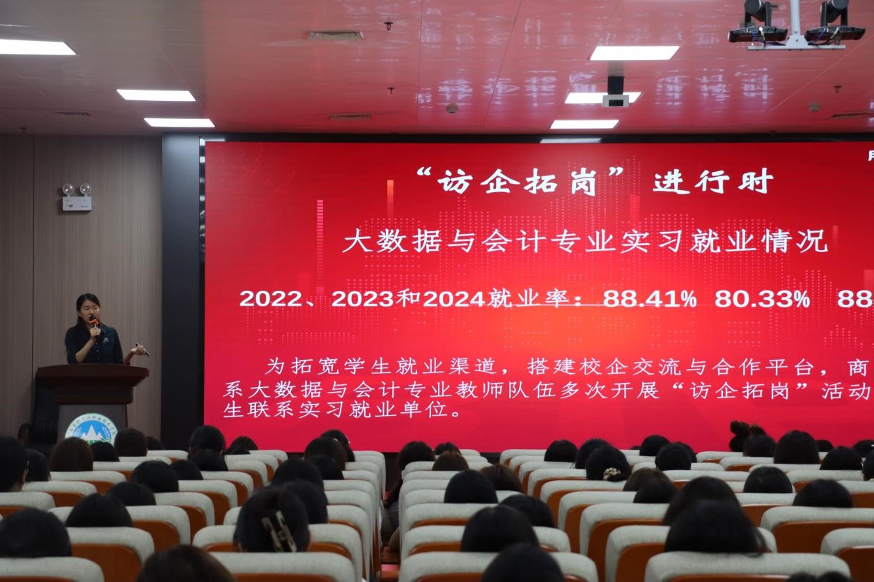 活动前,商贸管理系李斌主任向2024级大数据与会计专业的新生学子们开展了系情教育,详细介绍了商贸管理系在教学、科研和人才培养方面所取得的显著成就。多年来,商贸管理系始终坚持以学生为中心,不断优化教学资源,提升教学质量,为社会培养了大量优秀的商贸人才。在未来规划方面,李斌主任强调了大数据与会计专业的广阔前景和重要性。随着信息技术的飞速发展,大数据在会计领域的应用越来越广泛。商贸管理系将紧跟时代步伐,不断加强专业建设,深化教学改革,培养出具有创新精神和实践能力的高素质会计人才。同时,系部还将积极拓展与企业的合作,为学生提供更多的实习和就业机会。在系部活动方面,李斌主任为同学们介绍了学术竞赛、社团活动、运动会和社会实践等一系列丰富多彩的活动,不仅丰富了学生的课余生活,还能提高学生的综合素质和专业技能。
