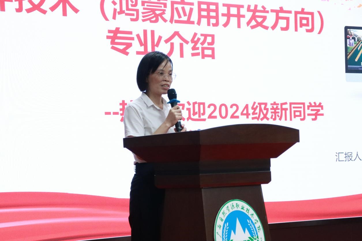 骨干教师韦海清副教授针对软件技术(鸿蒙应用开发)专业,深入浅出地分析了该领域的行业现状、典型应用场景及学习方法。她强调,鸿蒙系统作为华为自主研发的操作系统,具有巨大的市场潜力和发展前景,希望同学们能够紧跟时代步伐,掌握核心技术,为未来的职业发展打下坚实的基础。