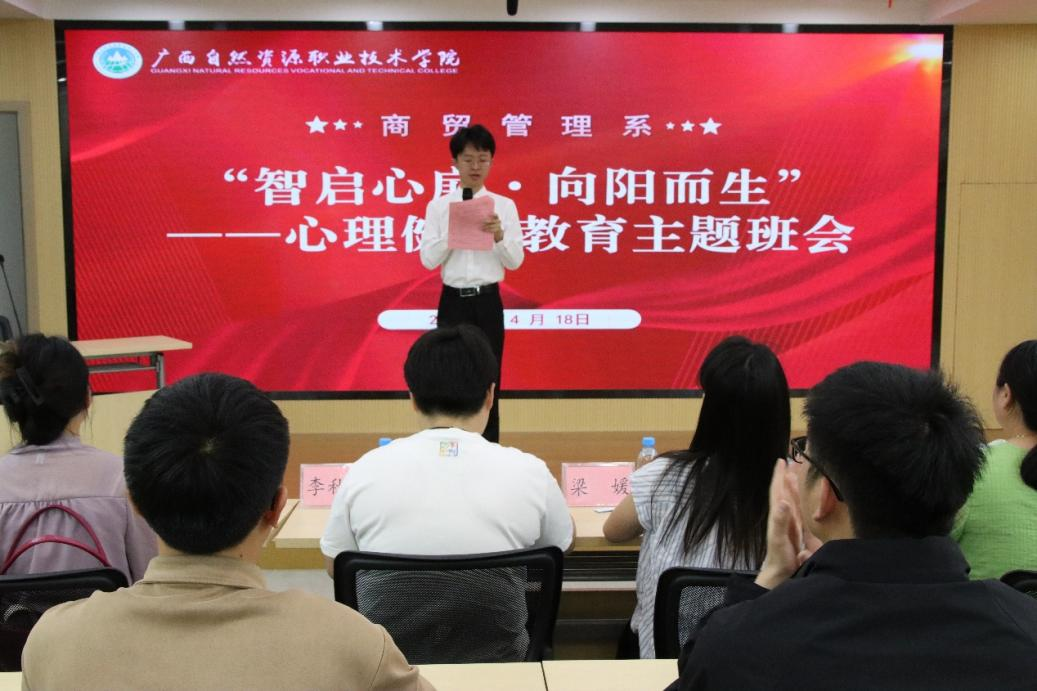 4月18日,商贸管理系在图书馆501会议室成功举办了心理健康教育主题班会决赛。本次活动旨在深入学习贯彻党的二十大和二十届二中、三中全会精神,落实全国、全区教育大会要求,培养学生积极向上的心理品质,促进学生全面发展。