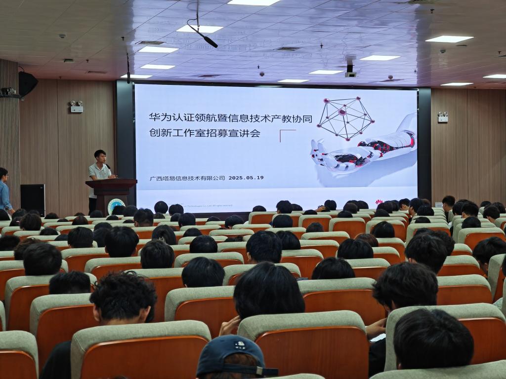 5月19日,为深化产教融合,推动校企协同育人,广西自然资源职业技术学院商贸管理系联合广西塔易信息技术有限公司,举办了华为认证领航暨信息技术产教协同创新工作室招募宣讲会。本次宣讲会吸引了近400名学生积极参与。