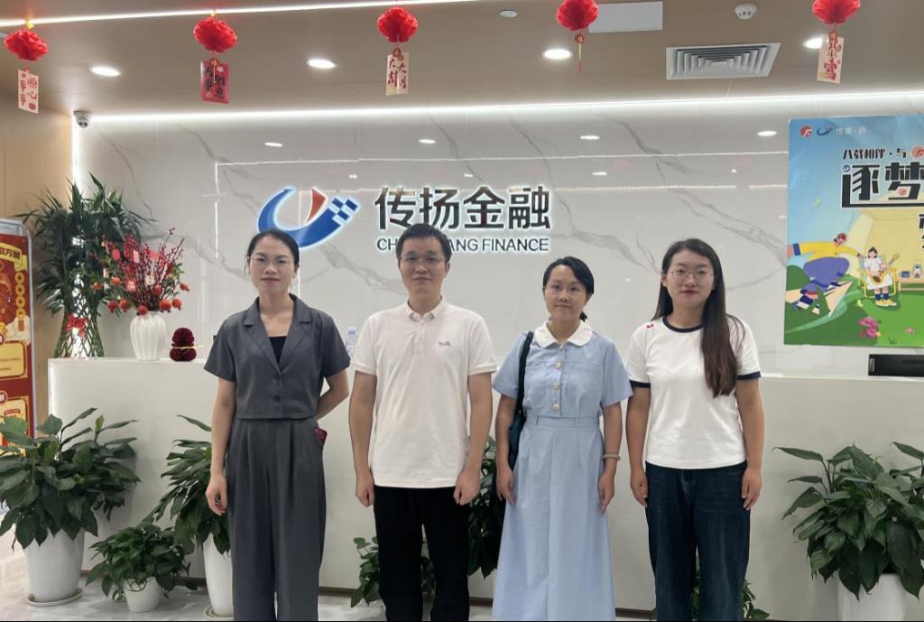 为深化产教融合,拓展就业渠道,6月13日,商贸管理系电子商务融创团队召集人谢东明带领专任教师何媛婧、辅导员蒙冬焕一行3人赴中国(广西)自由贸易试验区南宁片区五象绿地中心,对南昌传扬金融信息服务有限公司南宁分公司(以下简称“南昌传扬金融南宁分公司”)进行实地调研。