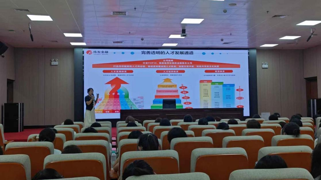 宣讲会上,南昌传扬金融公司的招聘经理详细介绍了企业发展情况,并针对当前就业形势,重点讲解了金融服务行业的发展趋势和人才需求。在招聘岗位介绍环节,企业表明将提供金融服务与管理等多个优质的实习就业岗位,引起了在场学生的浓厚兴趣。