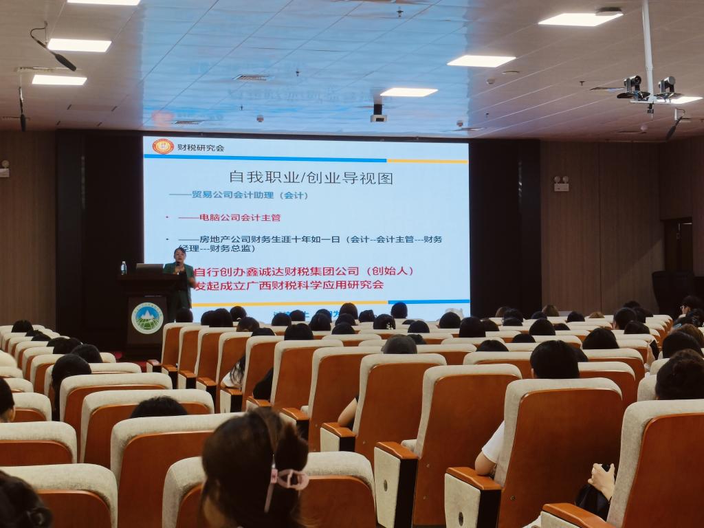为帮助学生明确职业发展方向,提升职业生涯规划能力,近日,商贸管理系特邀广西财税科学应用研究会常务副会长、广西代理记账行业协会监事单位、广西鑫诚达财税咨询集团有限公司董事长莫海玲,以“大学生如何定位自己的职业生涯”为主题开展专题讲座。