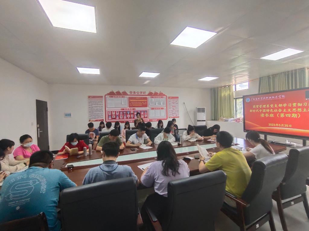 为贯彻落实学院党委关于深入开展学习贯彻习近平新时代中国特色社会主义思想主题教育的工作部署,加强理论武装,坚持不懈用习近平新时代中国特色社会主义思想凝心铸魂,商贸管理系党支部于2023年5月25日上午举办学习贯彻习近平新时代中国特色社会主义思想主题教育读书班(第四期),集中学习《习近平新时代中国特色社会主义思想学习纲要》(2023年版)第二篇《新时代坚持和发展中国特色社会主义_关于当代中国发展进步的根本方向》。