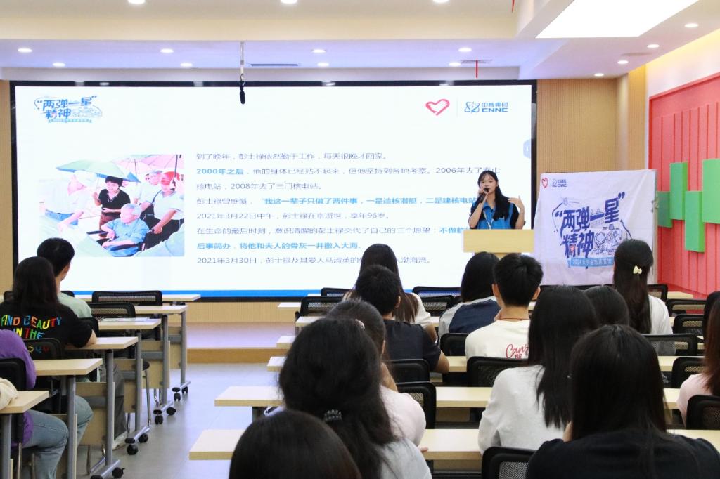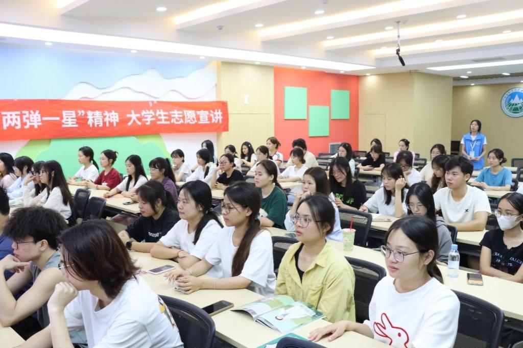 为深入学习贯彻习近平新时代中国特色社会主义思想和党的二十大、党的二十届三中全会精神,纪念中国第一颗原子弹成功发射60周年,商贸管理系“两弹一星”精神宣讲团积极响应团中央青年志愿者行动指导中心号召,持续开展“两弹一星”精神宣讲系列活动。