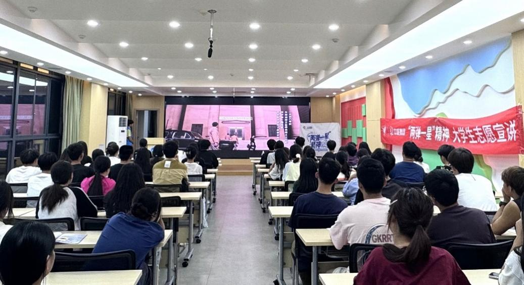 为学习贯彻习近平新时代中国特色社会主义思想和党的二十大、党的二十届三中全会精神,传承“两弹一星”精神,铸就青春使命担当,2024年9月25日晚,广西自然资源职业技术学院商贸管理系“两弹一星”宣讲团组织24级新生180余名团员和先进青年代表,在学院图书馆开展了三场两弹一星主题观影活动,开启了意义非凡的“观影悟知,传承精神”之旅。
