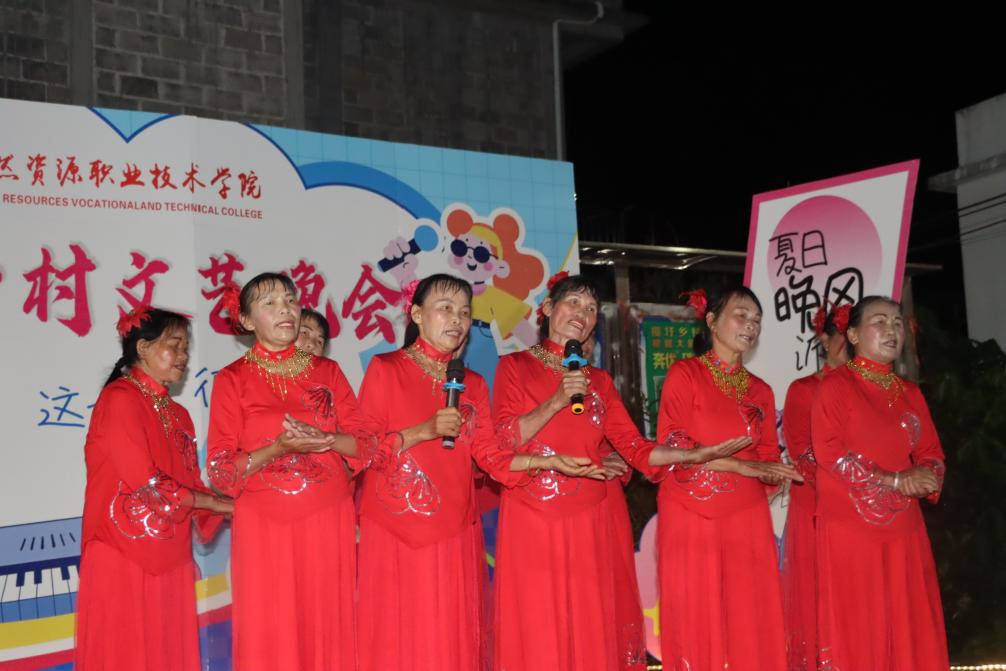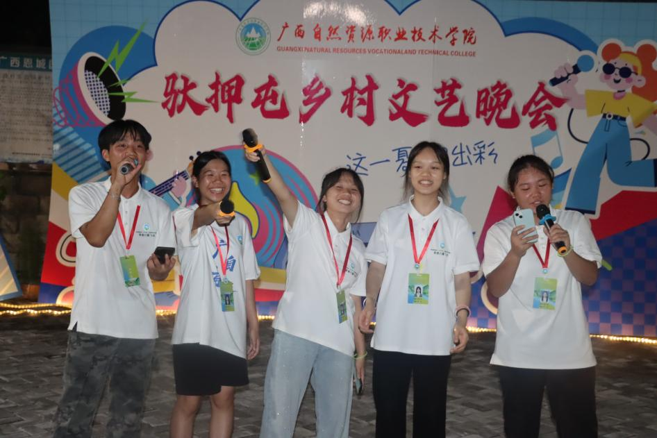 除了“村BA”和音乐会,实践团还在乡村晚会上搭建了更广阔的舞台:壮乡妇女穿上民族服饰,把生活点滴唱成歌;实践团成员用走秀、演唱展现新时代青年风貌,线上直播更让外界看到了驮押屯的生机。这些活动都是“三下乡”服务的延伸—从体育到文化,从线下到线上,实践团用多元形式,让村民的幸福感看得见、摸得着。