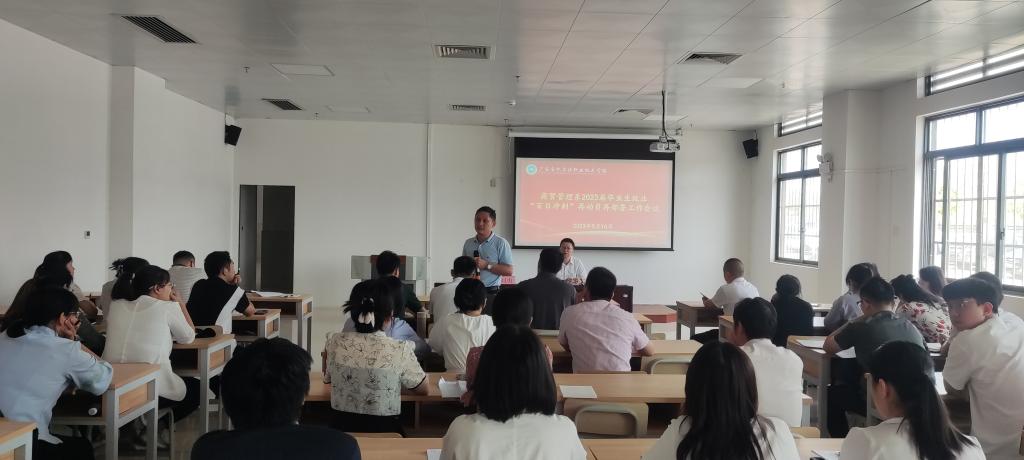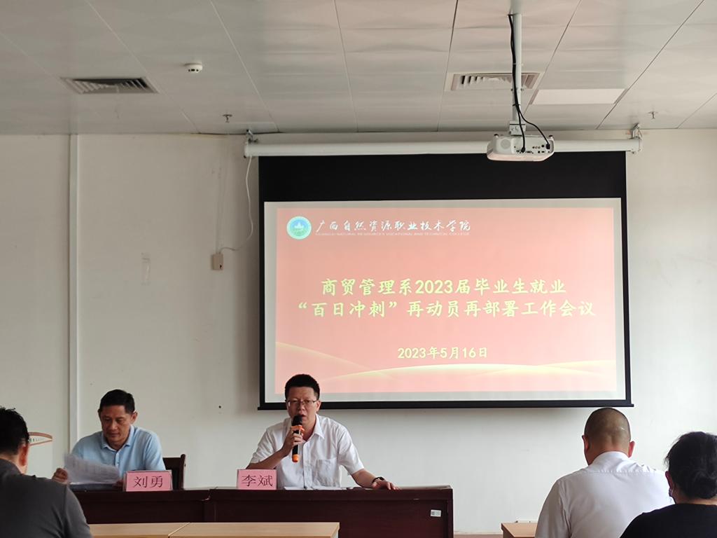 为贯彻全国高校毕业生等青年就业创业工作电视电话会议及学院2023届毕业生就业促进周和“百日冲刺”部署工作会议精神,商贸管理系于5月16日下午召开2023届毕业生就业“百日冲刺”再动员再部署工作会议,学院党委副书记、纪委书记刘勇出席会议,会议由商贸管理系主任李斌主持。首先,李斌主任传达上级会议精神并通报系部就业进展情况,随后,就业工作突出个人做工作经验分享,班主任就业导师代表做工作表态,最后刘勇副书记做部署讲话,他在讲话中指出,目前就业形势仍然严峻,要做好现阶段就业工作,一是要加强联系,毕业生辅导员、班主任、就业导师要加强联系,互通学生就业进展情况,分享经验,相互补充做好学生就业指导帮扶工作,二是挖掘各方资源,继续夯实推进访企拓岗工作,推进校企合作,为推动学生高质量就业创造更加有利条件,三是要开拓思路和眼界,科学统筹毕业生实习就业工作,学院将进一步创造专任教师入驻企业开展科研项目运营、挂职锻炼等渠道,提升专业办学能力,增加学院社会声誉及认可度。今后,商贸管理系将进一步加强就业工作组织领导,压实毕业班辅导员、班主任、就业导师三支队伍责任,做好毕业生就业宣传引导,确保完成2023届毕业生就业目标任务。
